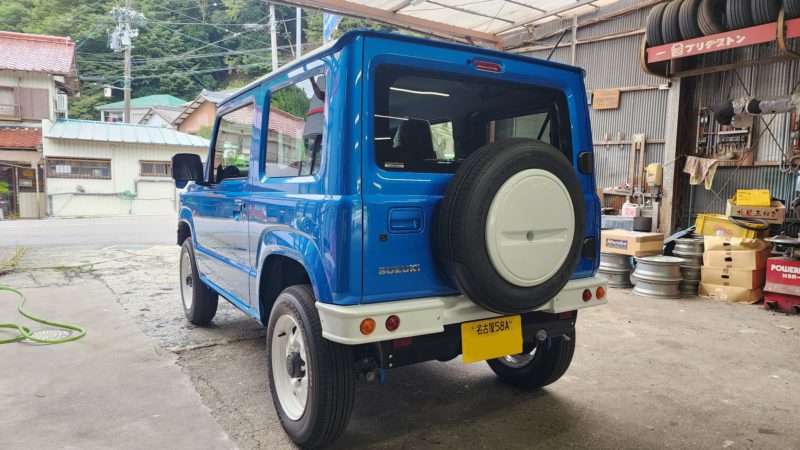 白く塗装したスペアタイヤカバーが、このジムニーには