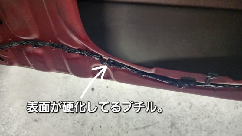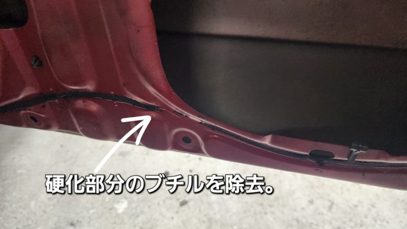 硬化した部分のブチルと取り除きます。