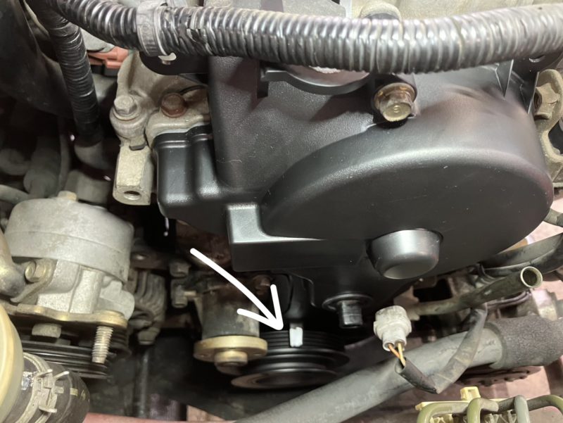 エンジンにはやせ細ったクランクプーリーが残されている・・・。