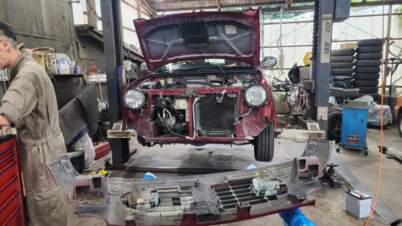 ベルトとフロントバンパーを取り付けたら修理完了です。