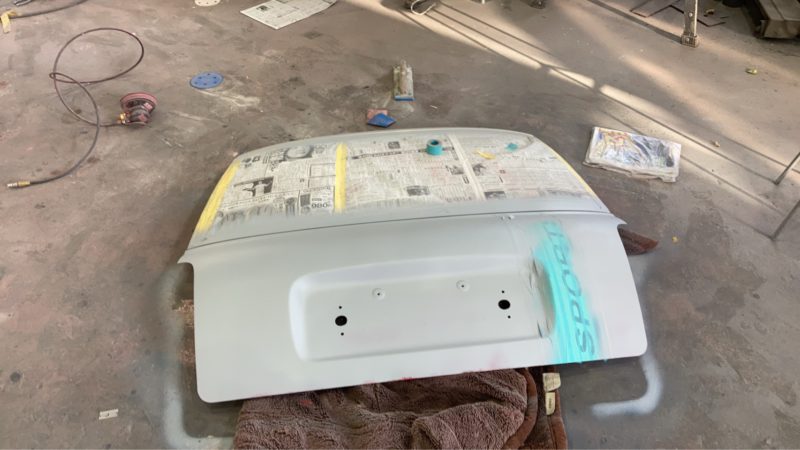 勿論バックドアの裏側もテカテカの塗装に仕上げる為に処理していきます。