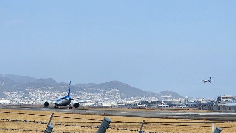 師匠の希望で飛行機を見に伊丹空港近くの公園に来ました。
