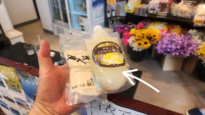まるっとLEMON果汁は凍っているので車内で飲む事にします。