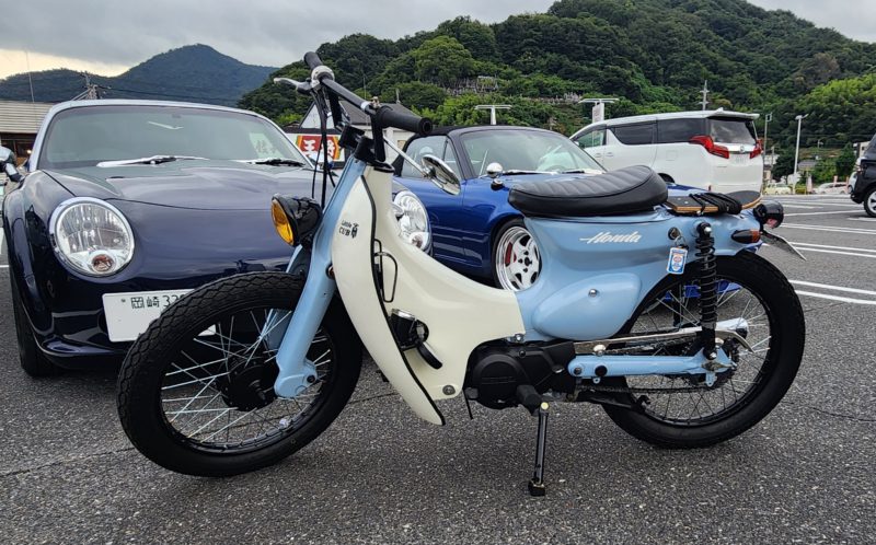 自身でコツコツ組み上げた自慢のスーパーカブが通勤の足。