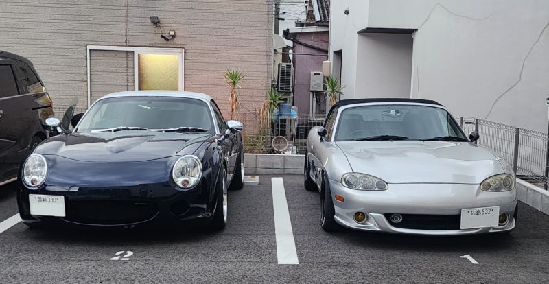 ロードスターの前に止まりました。