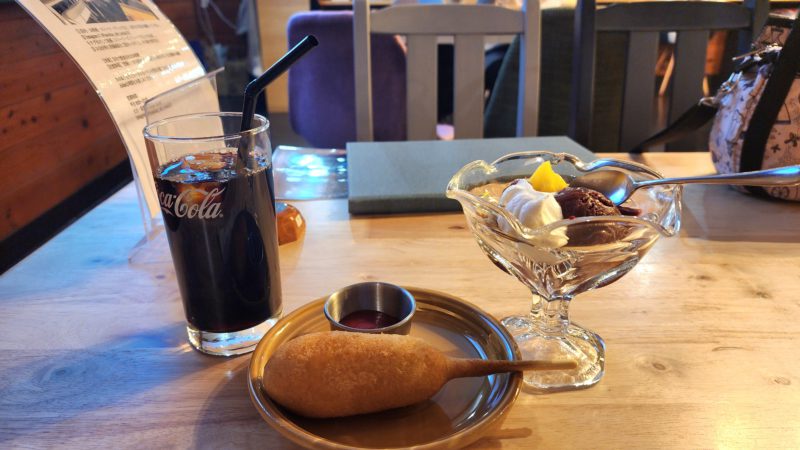 パフェとアメリカンドックでした。