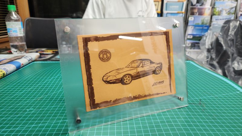 そこには、当社のデモカーであり僕の愛車のMiataがあしらわれた