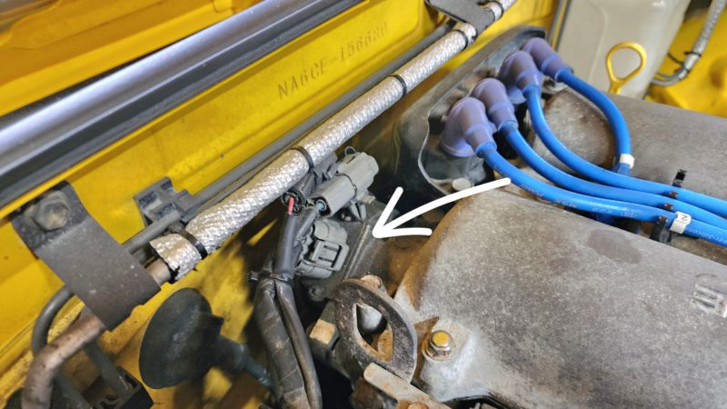 矢印の部品がクランクアングルセンサーです。