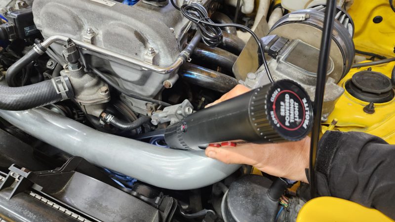 エンジン内部に洗浄液を送り込みます。