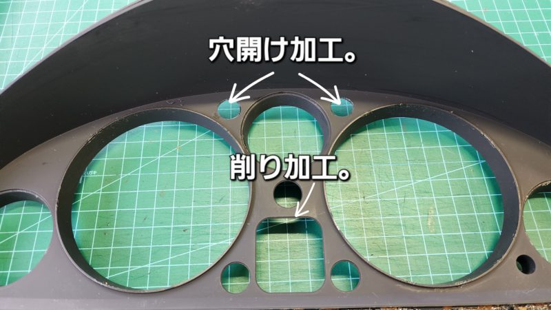 穴のサイズ等は、ジャスのメーターパネル(クラスターベゼル) を