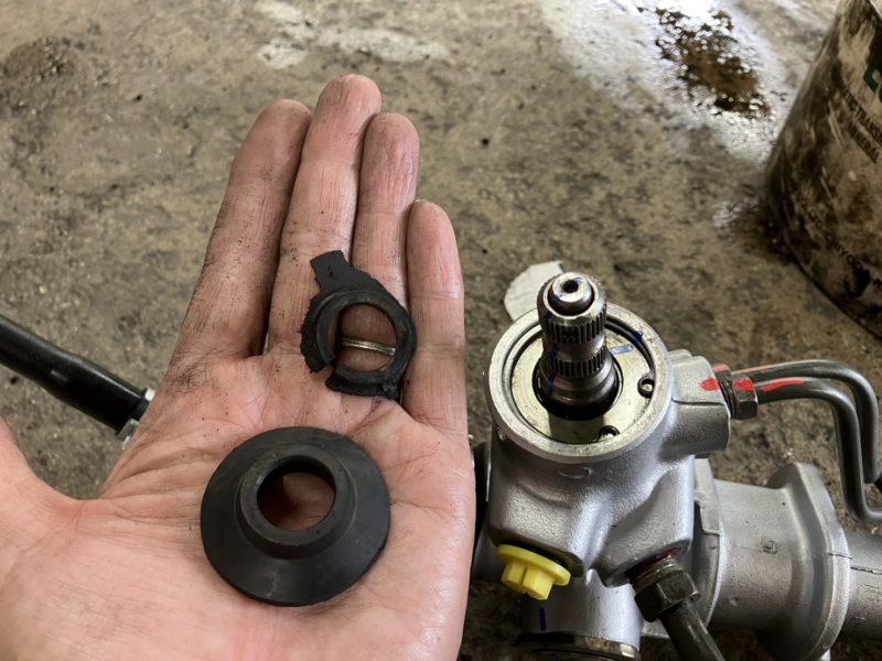 NB用のステアリングラック(事故破損品)からダストカバーを救出。