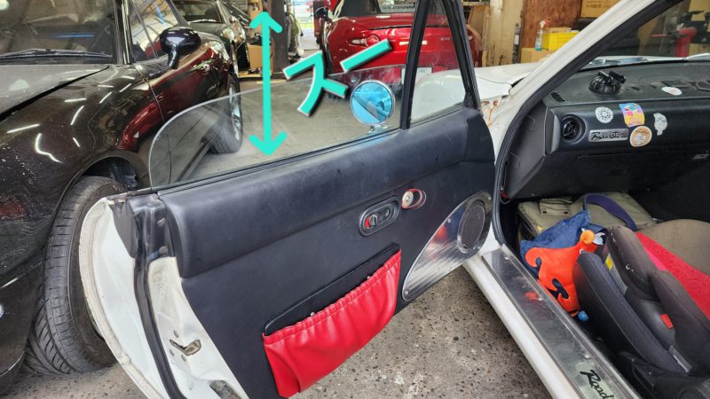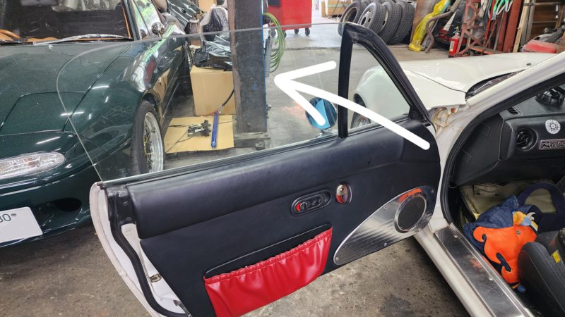 部品の在庫が無いので応急措置で窓ガラスを上げた状態で