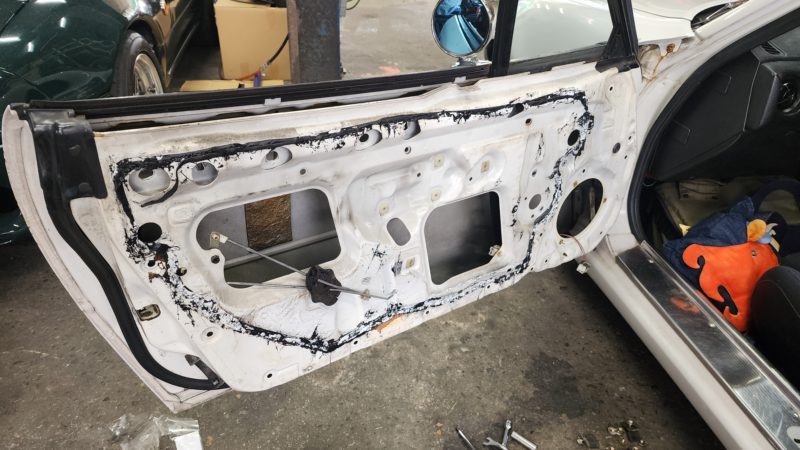 ウィンドレギュレーターのワイヤーが切れてガラスが脱落。