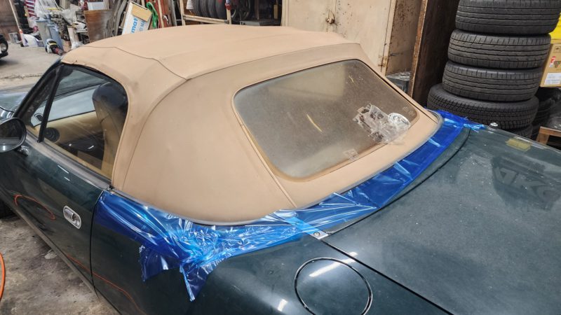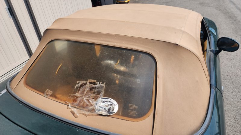 幌の表皮を固定する3分割のセットプレートがサビている。