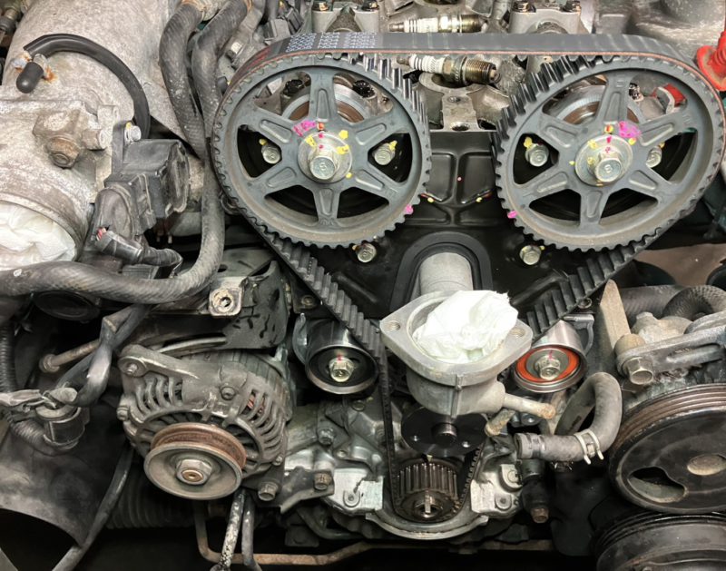 各プーリーを取付てタイミングベルトも交換。