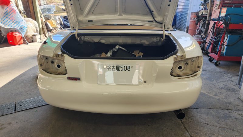 損傷に繋がるので、横着せずにトランクトリムは外しましょう。
