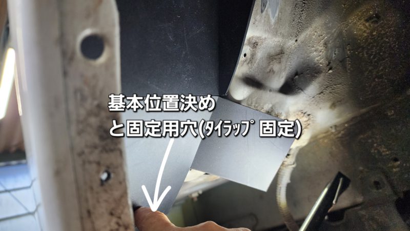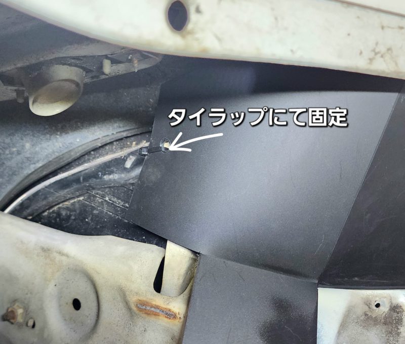 タイラップで固定した部分はフェンダーライナーレスキットの底部。
