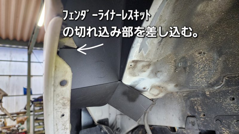 この時にタイラップで軽く留めてフェンダーライナーレスキットに