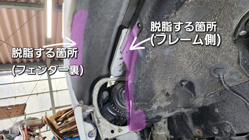 脱脂部分周辺も作業中に砂等が落ちてこないように予め掃除をします。
