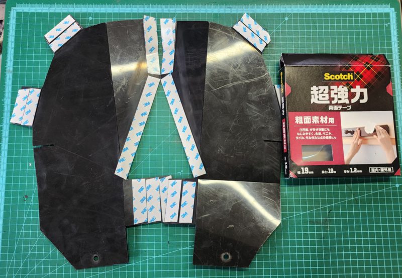固定方法は強力両面テープとタイラップ。