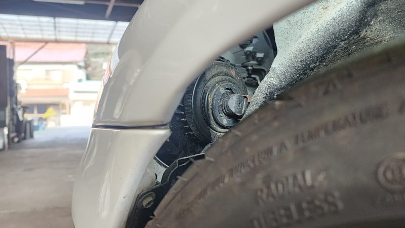 走行中のギャップでタイヤが干渉してフェンダーライナーに穴が開き、