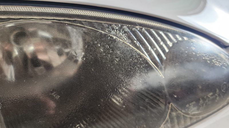 ヘッドライトに水が入りレンズの内側が結露してえらい事に・・・。