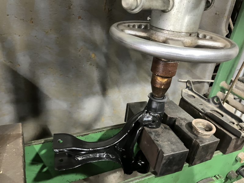 ブッシュの取付はプレス機を使用します。