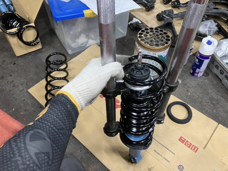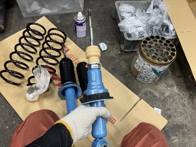 ショックアブソーバーに各純正部品を組付けで行きます。