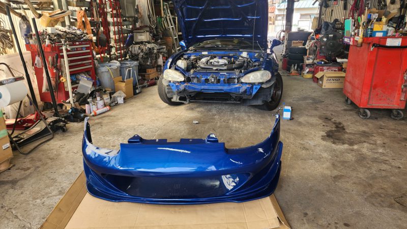 純正バンパーに比べてFRP製のバンパーはソリや歪みがあり、