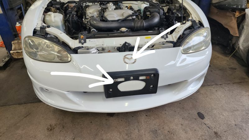 エンブレムとフロントのナンバーベース除去となります。