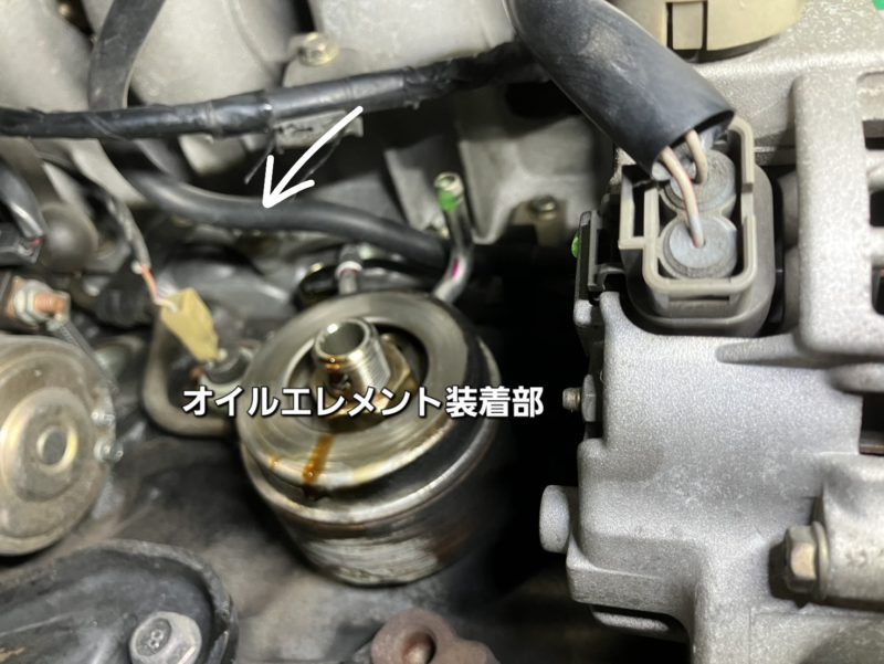 オイルエレメントの装着部のオイルクーラーにも