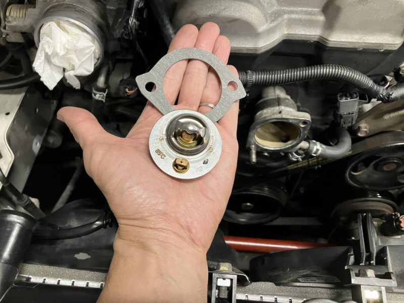 新品のサーモスタットを取り付けます。