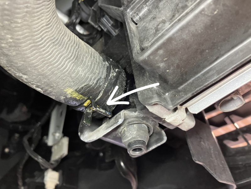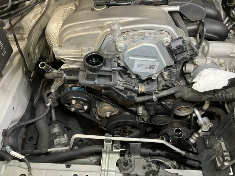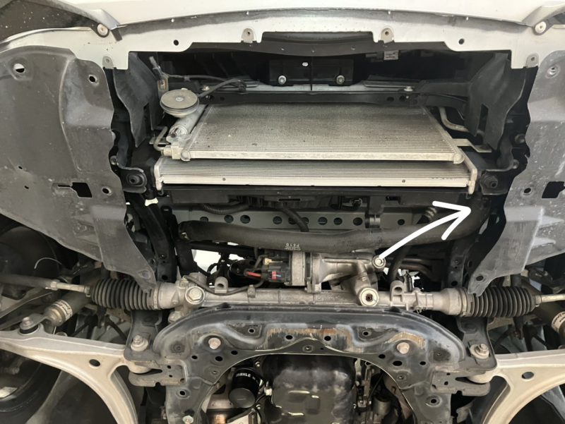 リフトに上げてアンダーカバーを外すと原因が分かりました。