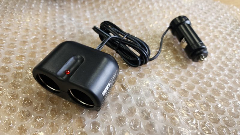 2極ソケットの配線を延長して助手席足元のシガーソケットへ接続。