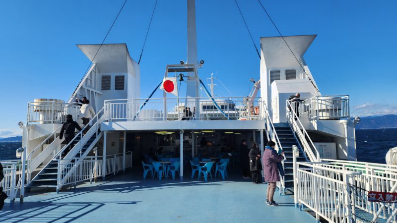 海風が吹く場所ですが、フェリーの旅って感じが味わえる良い場所です。