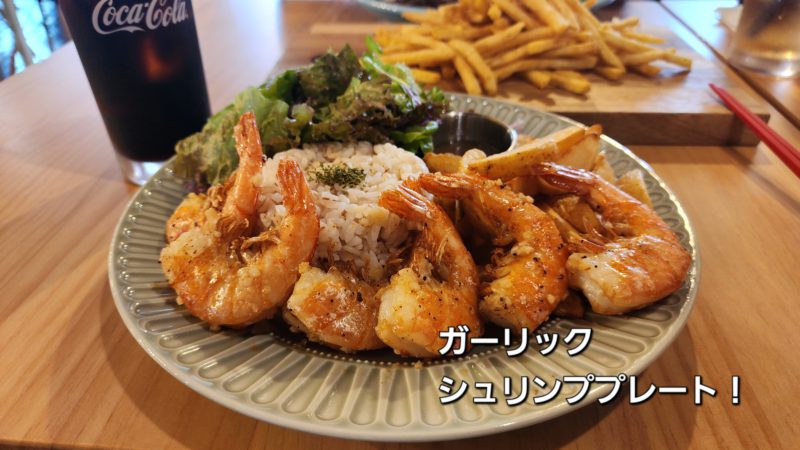 他のメニュー“ガーリックシュリンプ“よりも2尾多くてランチプレート