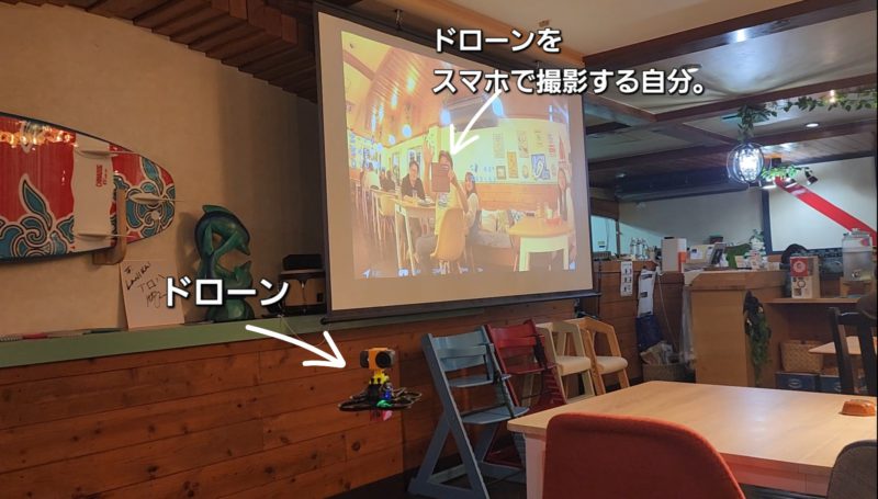 撮影した動画をそのまま店内のプロジェクターで上映。