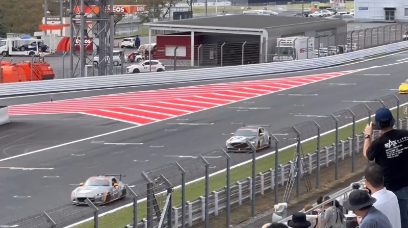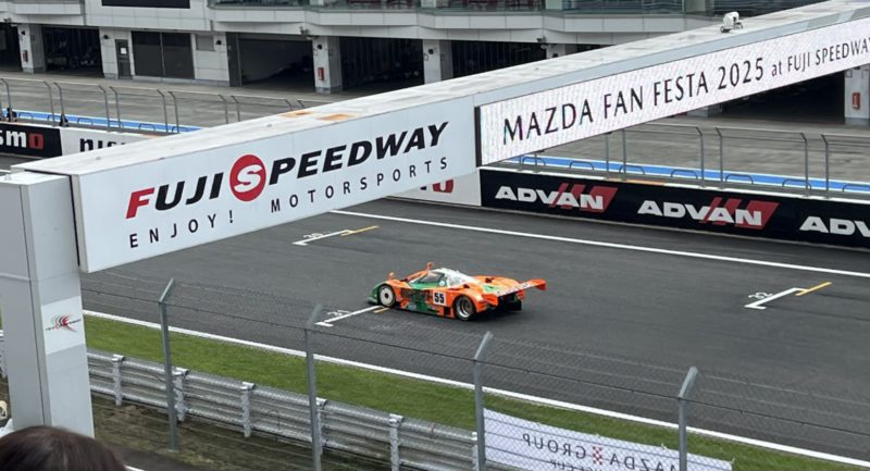 富士スピードウェイを快音を轟かせ疾走する787Bが!