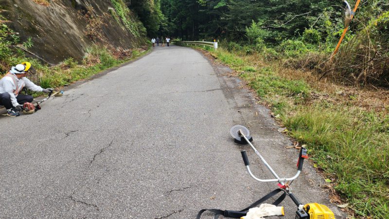 地域のみんなで力を合わせて道端の草を刈っていたその時