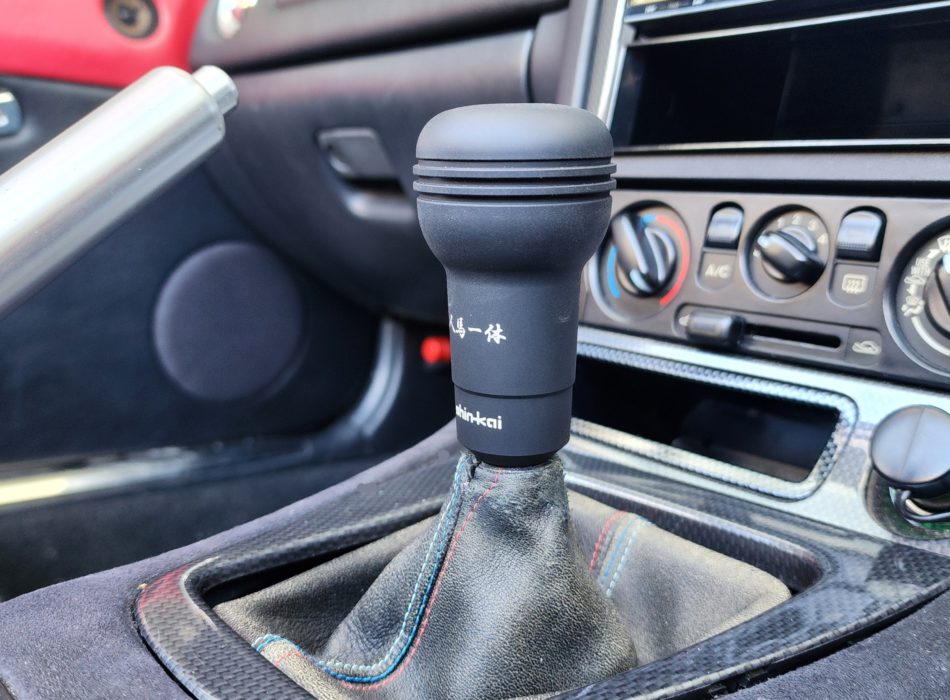 NAロードスターのシフトノブの代表格のナルディー製ウッドシフトノブ。そのシフトノブをアルミ素材で忠実に再現したのが、この“人馬一体シフトノブ”です。レザーステアリングや黒い内装とも馴染む低温黒色クロム仕上げで、高度なレーザー刻印で“人馬一体“の文字を施し、初代の頃のデザインを全ての年代のロードスターで幅広く楽しんで頂けるように製作しました。※取付時の微調整に六角レンチが必要となります。